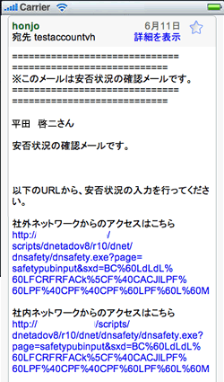 複数のメールが届いた場合、一番最後に届いたメールで安否確認が行えます。