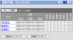 就業状況の月度単位の集計結果が表示されます。