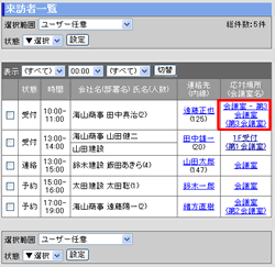 来訪者一覧の”応対場所(会議室名)”リンクを押してください。