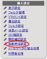 サブウィンドウの【個人設定】欄にある[自動受信設定]リンクを押します。