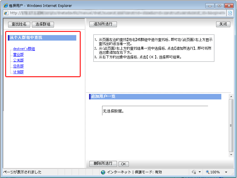 | 选择用户的方法 (从查找的群组中选择用户) |