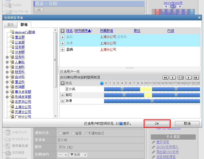 如果已经决定选择的用户,请点击「OK」。 如果想解除选择的用户,请点击。