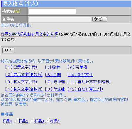 请输入导入格式时需要的信息。