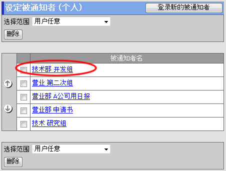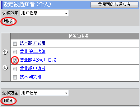 请从一览画面上的[选择范围]栏中选择想删除被通知者的范围。