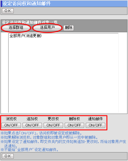 ※如果浏览权尚未设定,则不能设定追加权・更改权・删除权。