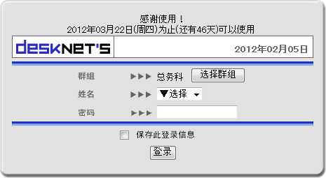 从群组栏和姓名栏内选择自己所属的群组以及自己的姓名后,输入密码即可登录。 选择群组时,请点击。