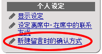 点击辅助窗口的【个人设定】-[新建留言时的确认方式]。