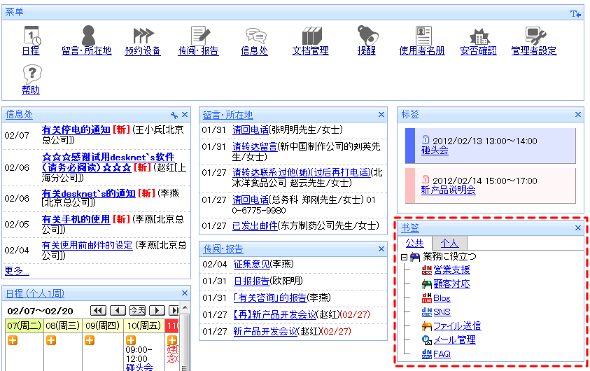 如果想启动正在显示的desknet's窗口以外的窗口显示,请选择“使用新窗口”。