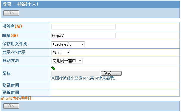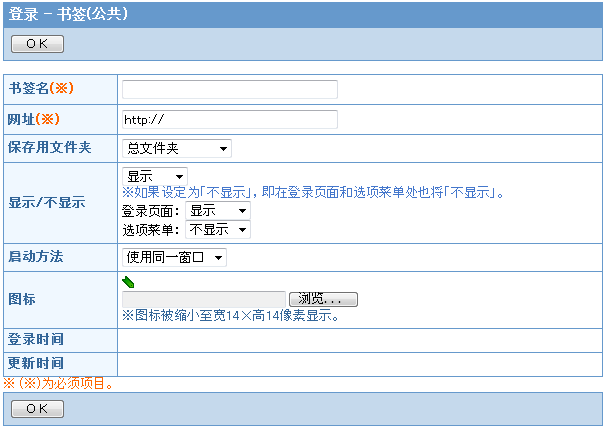 「登录页面显示・不显示」:请选择在登录页面是否显示书签。