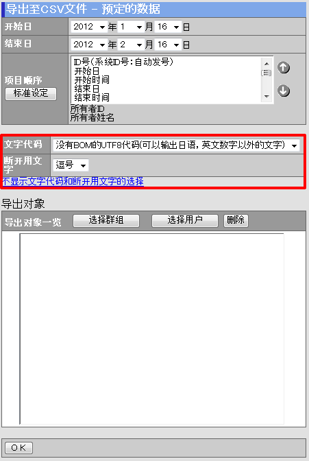 ※隔开文字如果选择「逗号」,导出的文件扩展名将为CSV(.csv)形式。 |