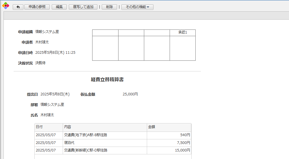 立て替えた経費を精算する際に使用する申請書アプリです。