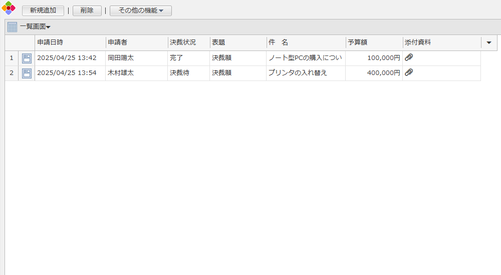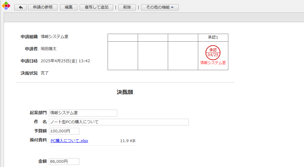 備品購入などの決裁を依頼するための申請書アプリです。