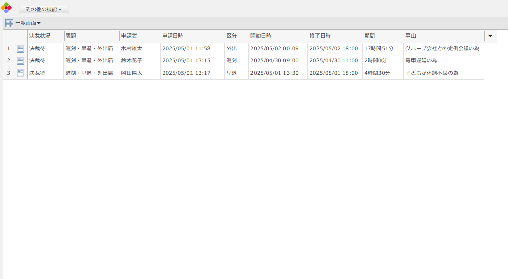 申請者は、承認状態(申請中、承認済)をアプリ上で把握することができます。