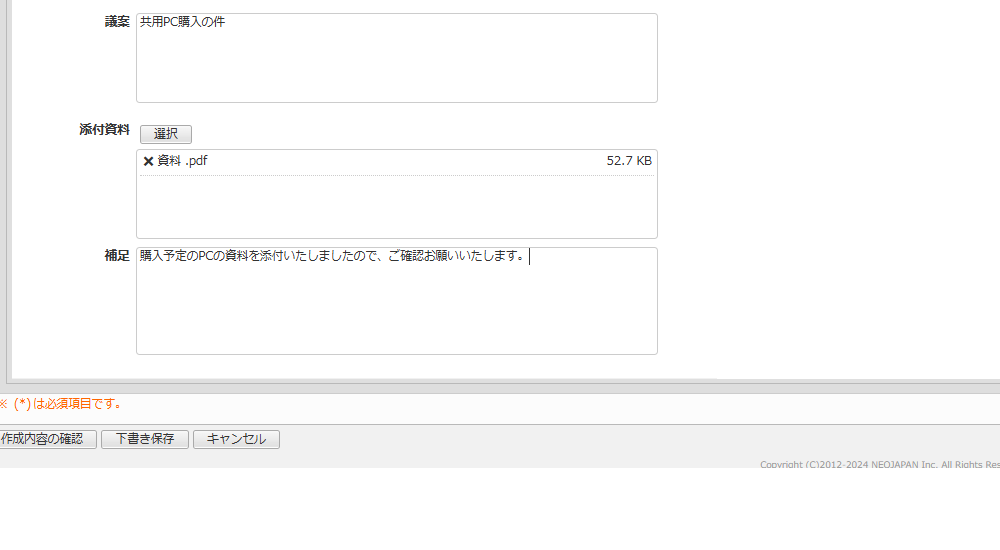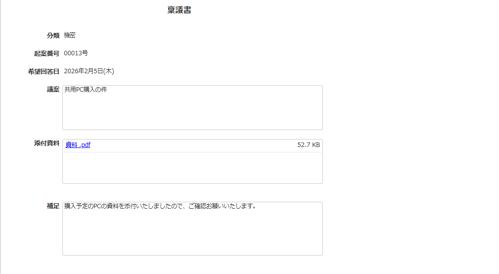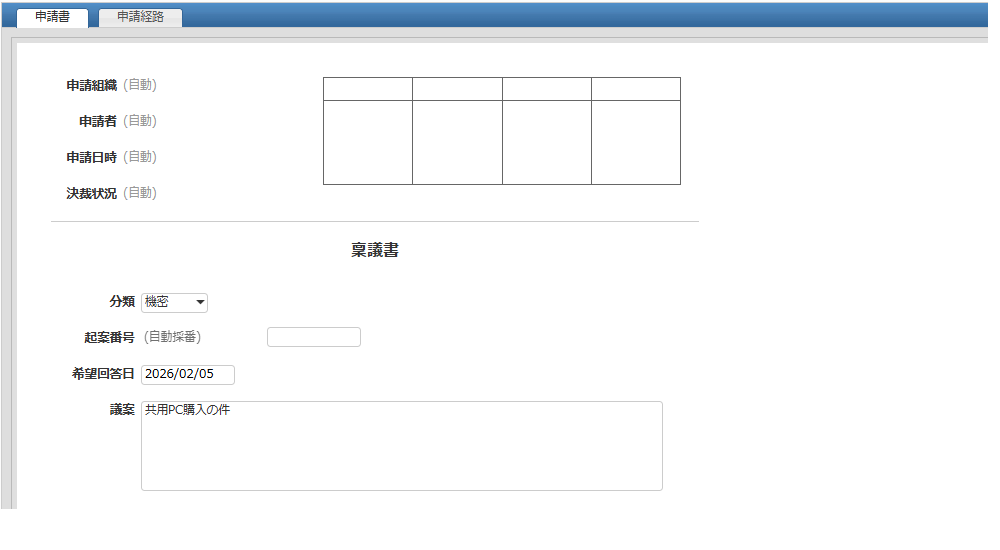 稟議書の申請書アプリです。使いやすいフォーマットで広く稟議全般にご利用いただけます。