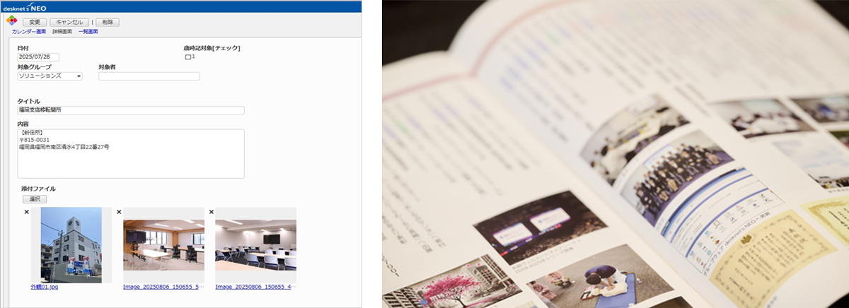 さらに、AppSuiteは他にも多彩な活用が進んでいます。例えば、社史のイベント記録アプリは、社内の出来事や写真データを記録・保管しておくことができ、今後、社内報の編集に貢献することが期待されています。