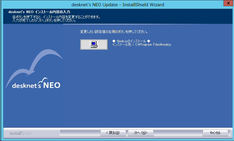 | ※ご利用のサーバーにインストールされているdesknet's NEOは、本アップデートツールからアップデートできる対象バージョンではありません。 | |