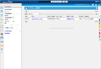 来客予定と利用する設備、応対者の情報を把握できるので、スムーズな取次ぎが行なえます。