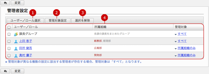 管理対象を押すと、対象の管理者の管理対象が設定されます。