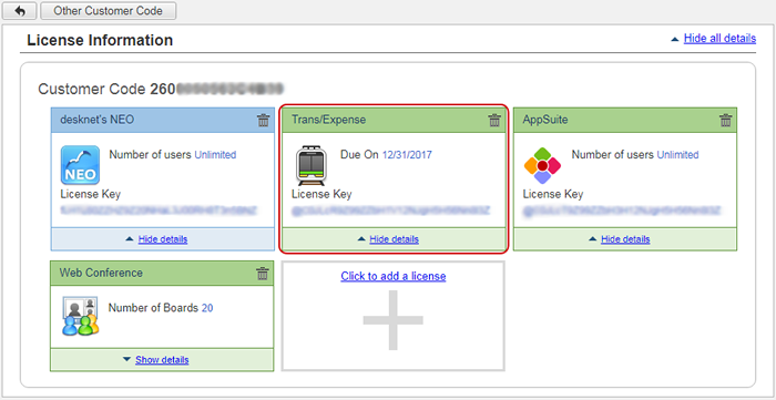 Enter a license key of the Transportation/Expense application and click "OK" button to save.
