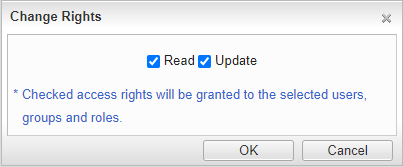 * If "Read" access right is not set, you cannot set "Update" access right. If you remove "Read" right, the user/group/role is removed automatically from the list.