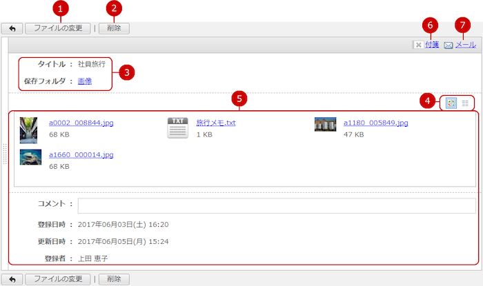 詳細画面の[ファイルの変更]ボタンを押すと、変更画面が表示されます。