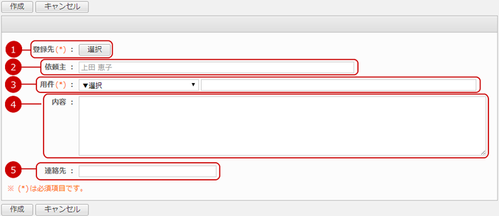 未入力の場合は、伝言を作成したユーザーが依頼主として登録されます。