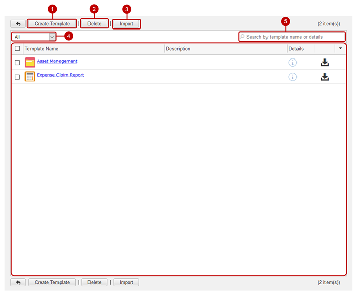Click the [Import] button to display the template import dialog.