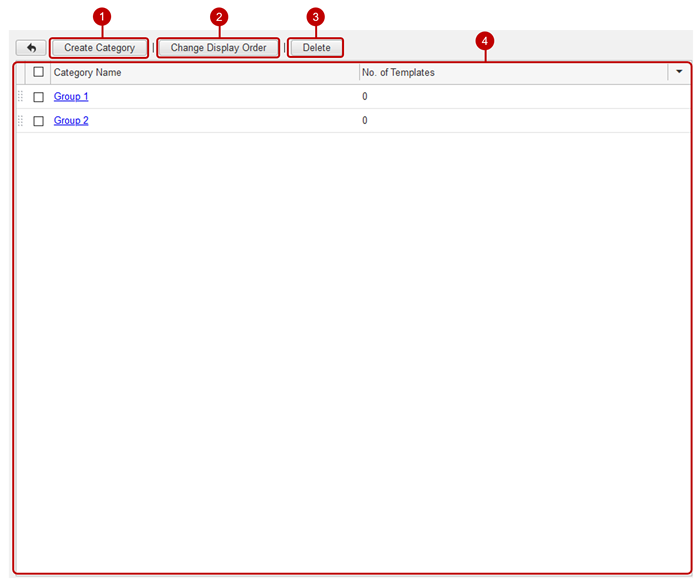 Click the Template Category Management link in the setting menu to display the template category management screen.