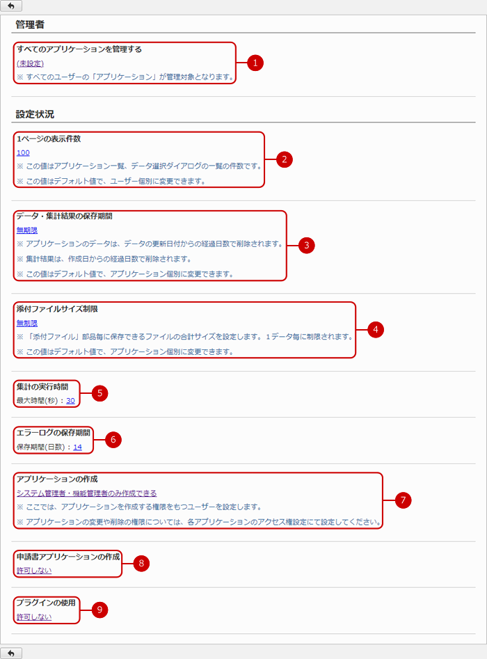 すべてのアプリケーションを管理する機能管理者の設定状況が表示されます。
