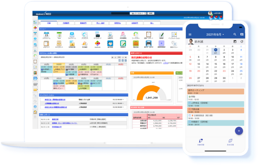 グループウェア「desknet's NEO(デスクネッツ ネオ)」には、稟議書や出張申請など、社内の申請業務を電子化できるワークフロー機能が備わっています。グループウェアは、スケジュール管理やファイル共有などの機能も搭載しているため、情報共有にも活用できます。desknet's NEOであれば、1人あたり月額800円と安価に導入することが可能です。