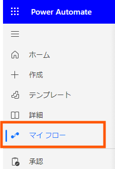 ①以下のURLからPower Automateのサイトを開き、「マイフロー」からフローの一覧画面を開きます。