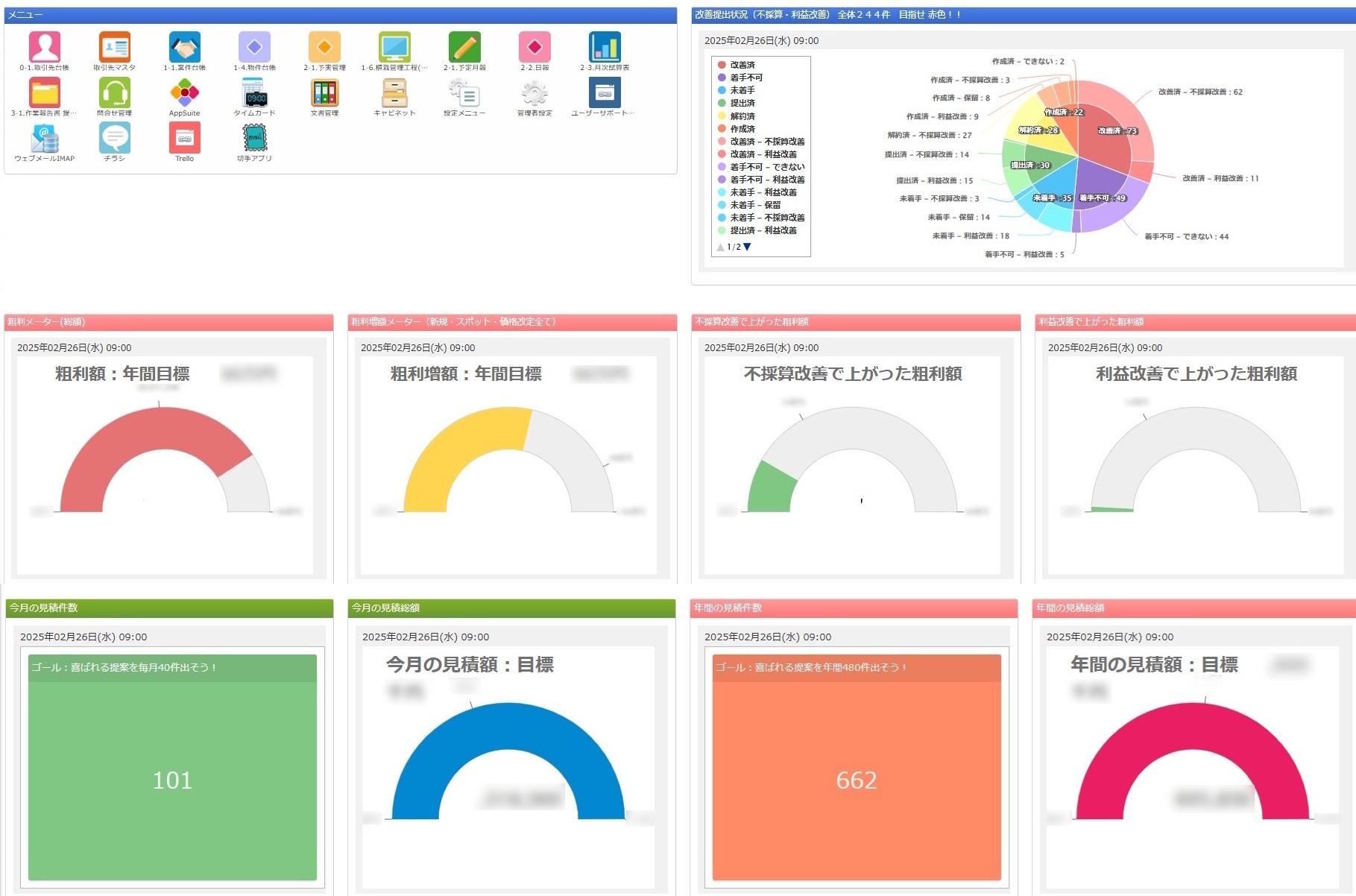 リアルタイムで売り上げ、利益率、受注、失注情報など、経営情報を社員にわかりやすくグラフ化して、共有し、迅速な戦略変更が可能になりました。価格交渉の過去受失注のデータを解析し取り組みにあたった結果、年間73件、580万円の粗利の改善を図ることができました。