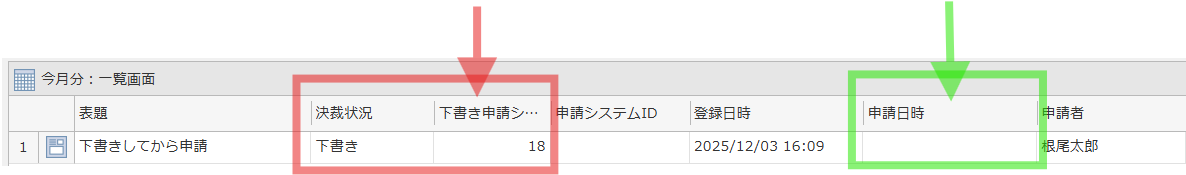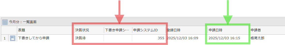 ┗決裁状況:下書き → 決裁待