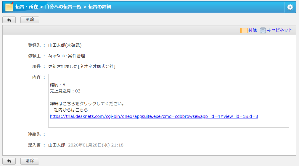 Emailでは社員を装ったスパムの事例が報告されています。そのため、Emailを利用しない通知方法の一つとして、desknets NEOの伝言機能をご紹介します。