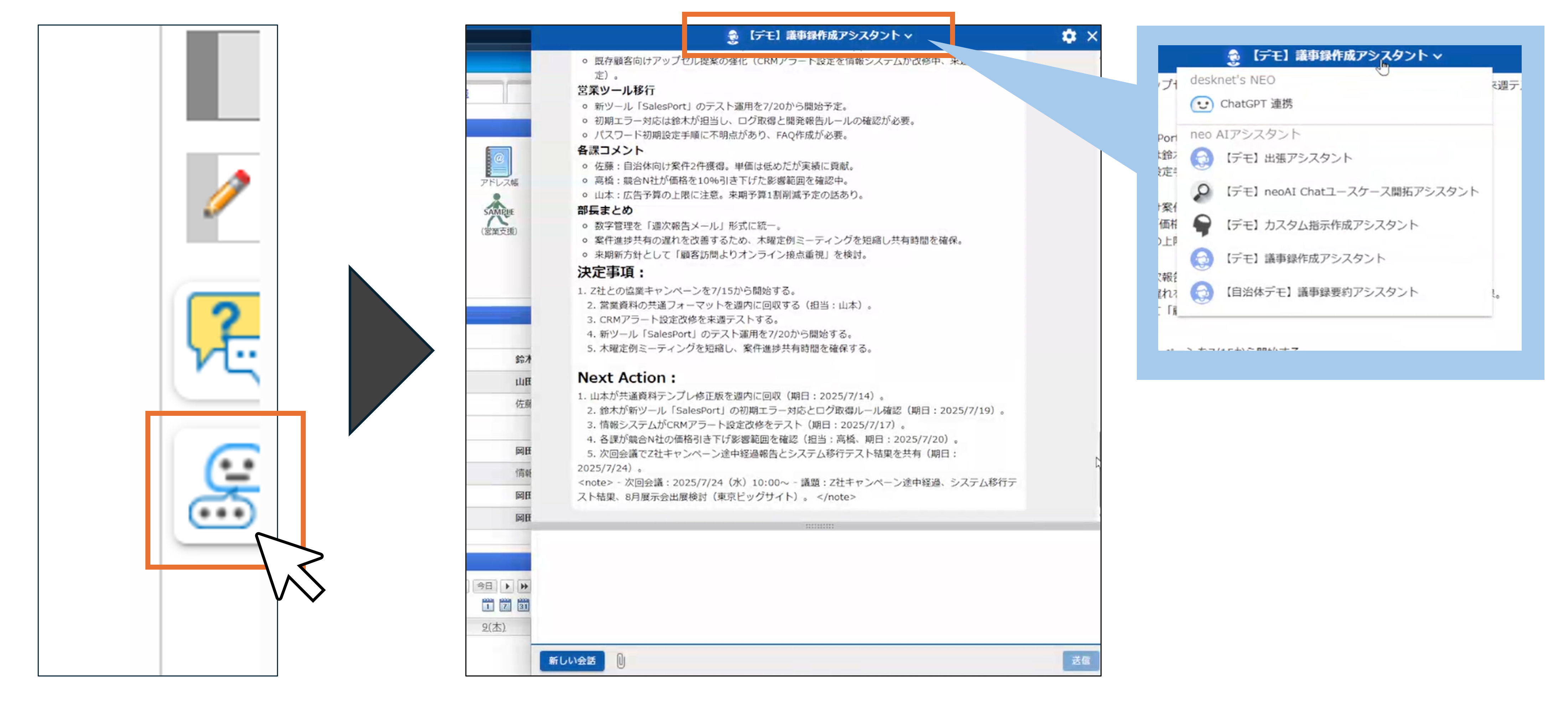 desknet’s NEOやChatLuckでneoAI Chatのアシスタントを活用することで、