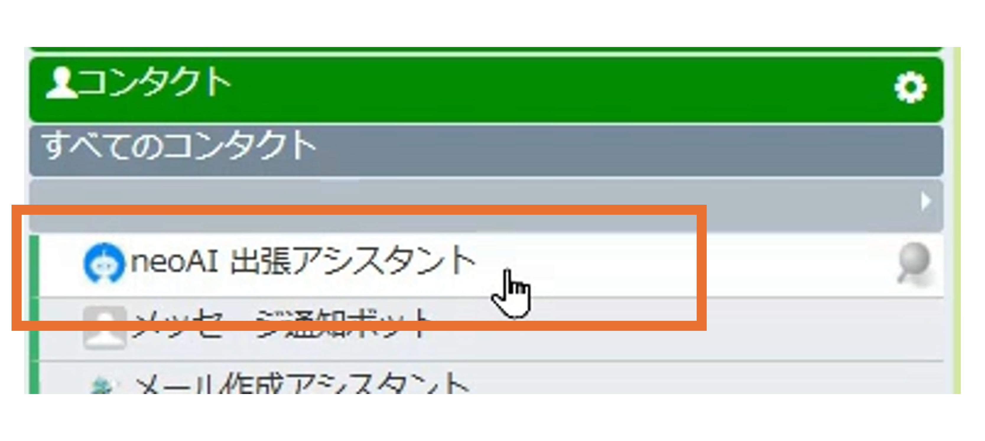 コンタクト一覧からneoAI 出張アシスタントを選択します。