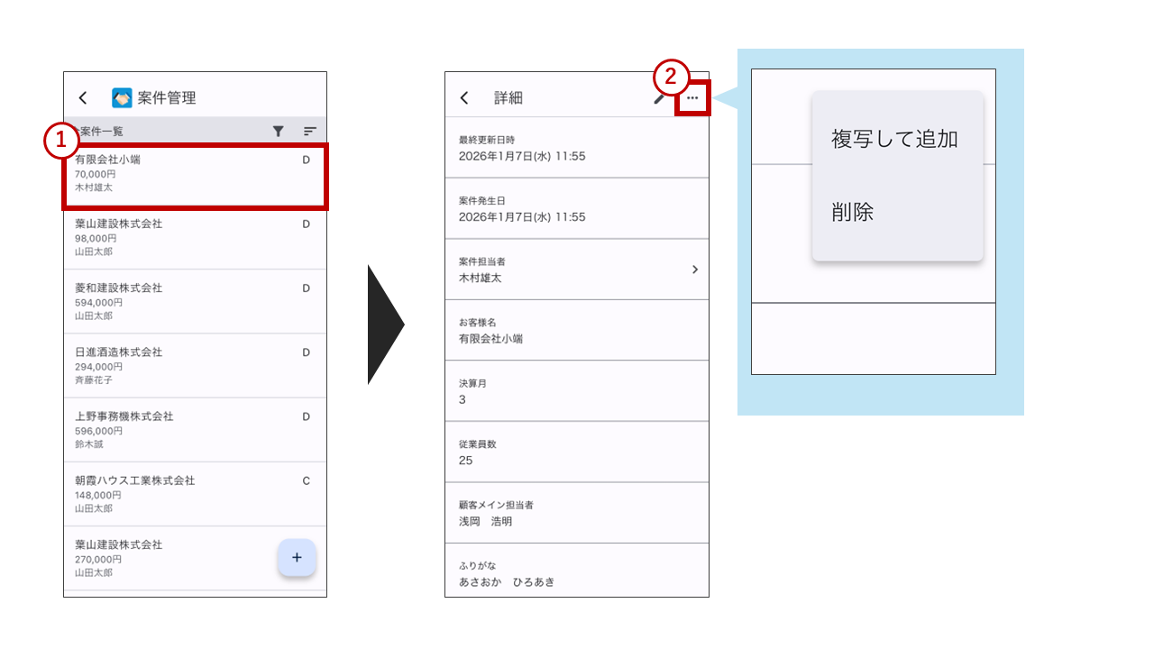 ②右上の三点リーダーをクリックすると、データを複写して追加、または削除できます。