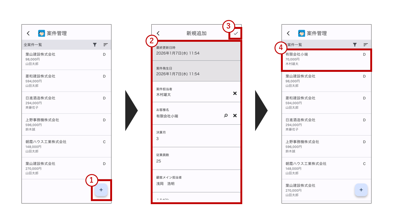 ④登録したデータは一覧画面から確認できます。