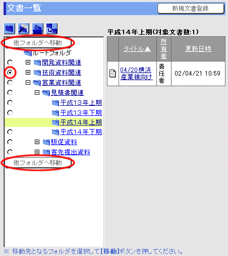 文書一覧画面の を押します。 移動する文書が一覧表示されます。