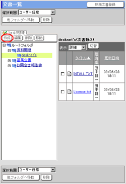 を押すとフォルダが作成され、文書一覧画面に表示されます。
