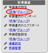 サブウィンドウの【管理機能】欄にある[申請書式設定(共有・グループ)]リンクを押します。