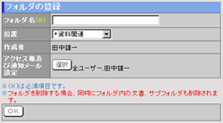 登録するフォルダに対してアクセス権限の設定と、文書を追加・変更・削除した際に通知メールを送信する設定を行うことができます。 |