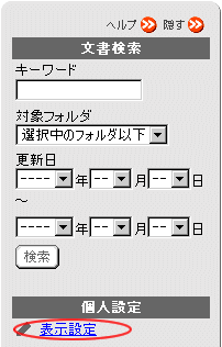 サブウィンドウの【個人設定】欄にある[表示設定]リンクを押します。