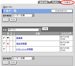 下書き保存をした申請について、[表題]欄で選択されている条件に該当する申請の一覧が表示されます。
