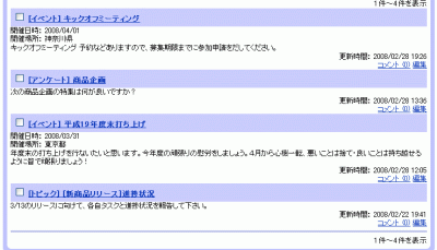 [はい]ボタンをクリックすると、イベント内容が変更されて掲示板一覧画面が表示されます。