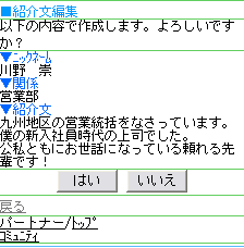 [いいえ]ボタンをクリックすると、紹介文作成画面に戻ります。