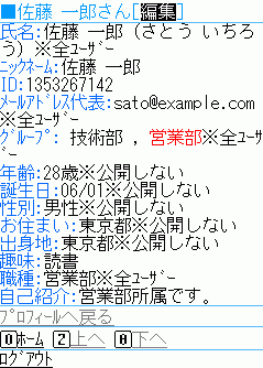 2.トップページの[プロフィール]リンクをクリックすると、プロフィールの詳細画面が表示されますので[編集]リンクをクリックしてください。