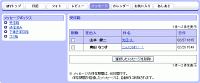 MYトップのタブメニューの[メッセージ]ボタンをクリックすると、メッセージボックスが表示されます。