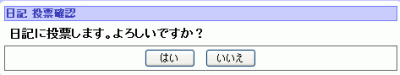 2.日記投票確認画面が表示されます。「はい」ボタンをクリックすると、ユーザーの日記にポイントを投票します。