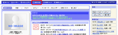 1.画面上部のメニューにある[新着日記]ボタンをクリックすると、ユーザー検索画面が表示されます。